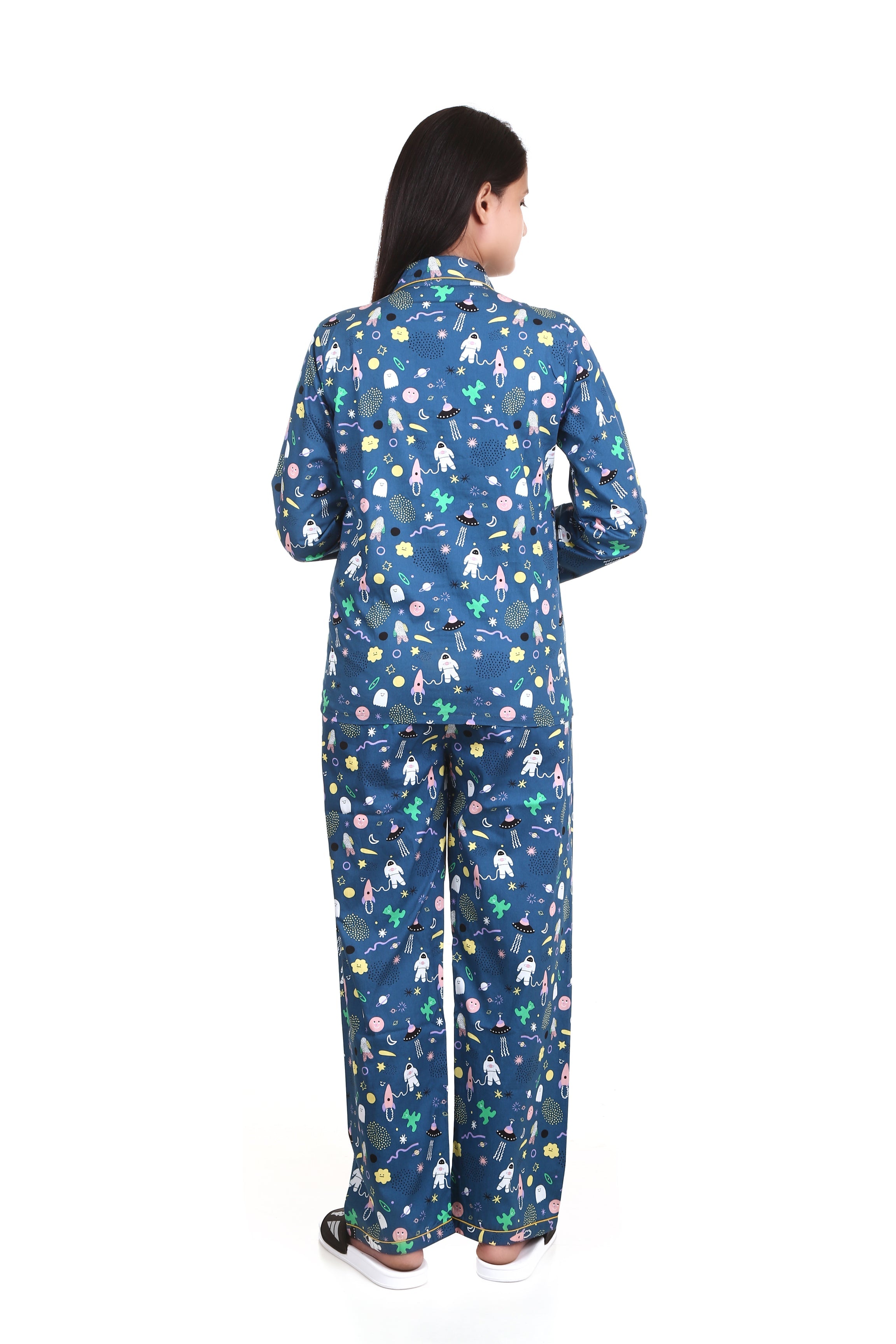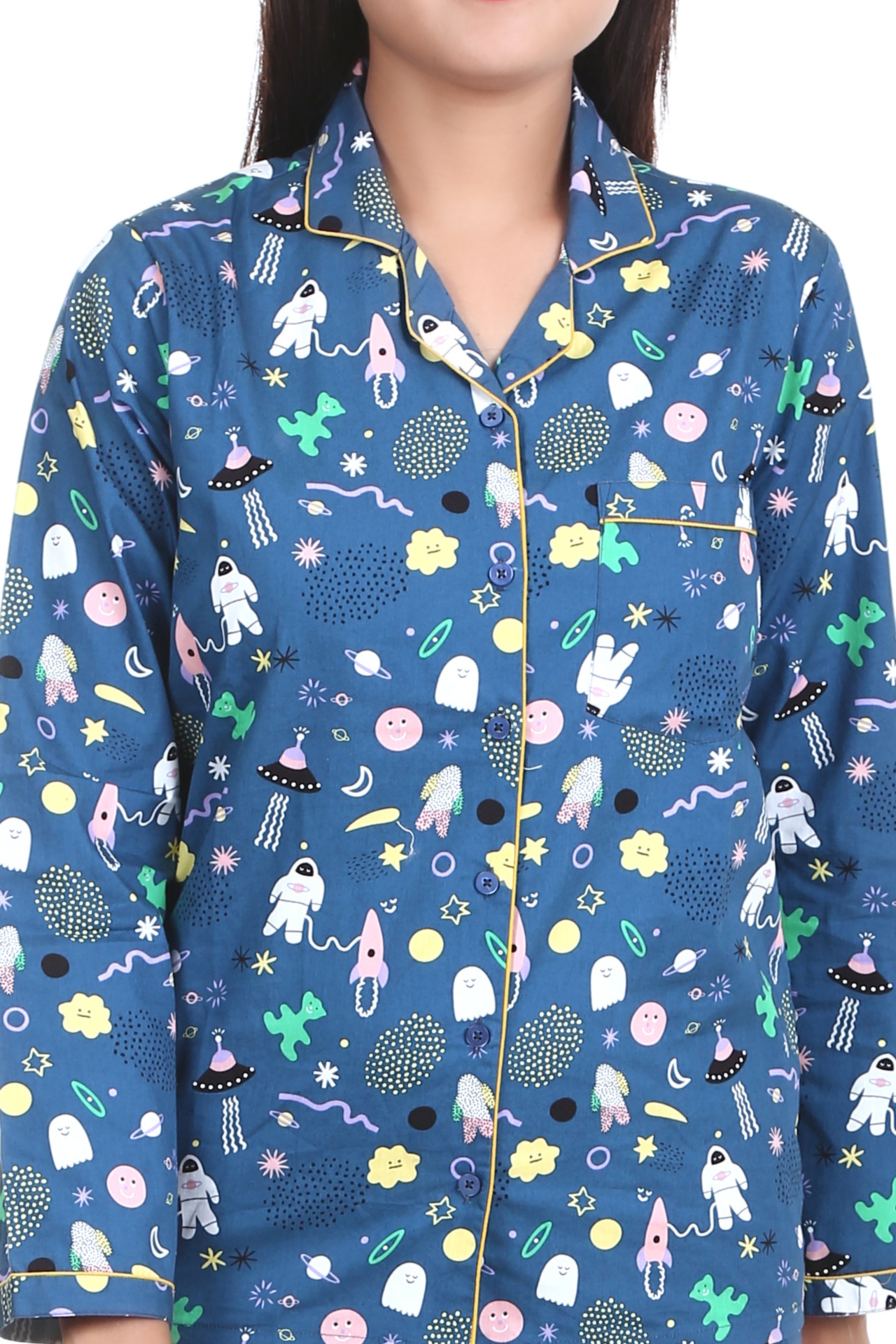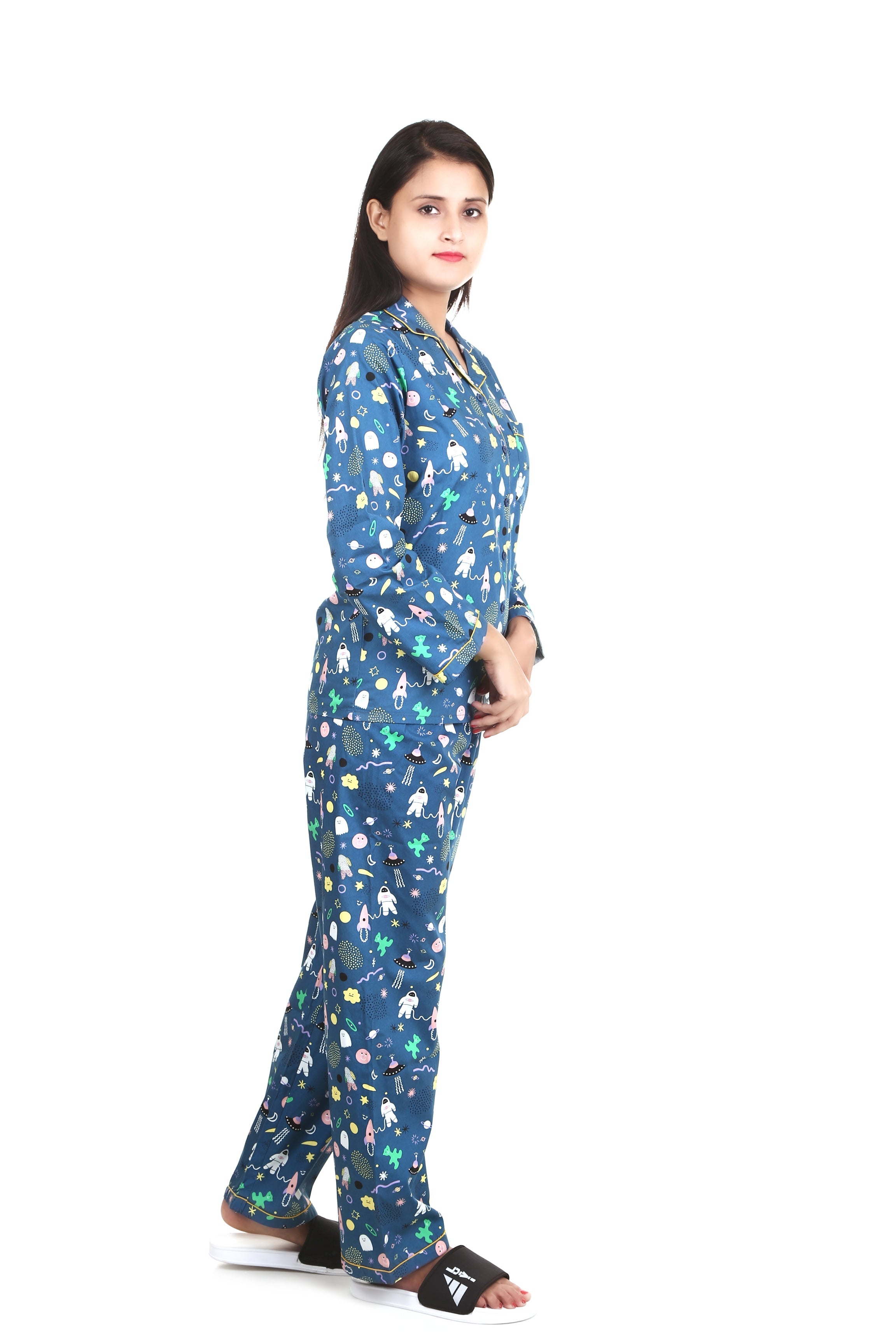 Astrophysics Prints Long Sleeves Night Suit For Women’s