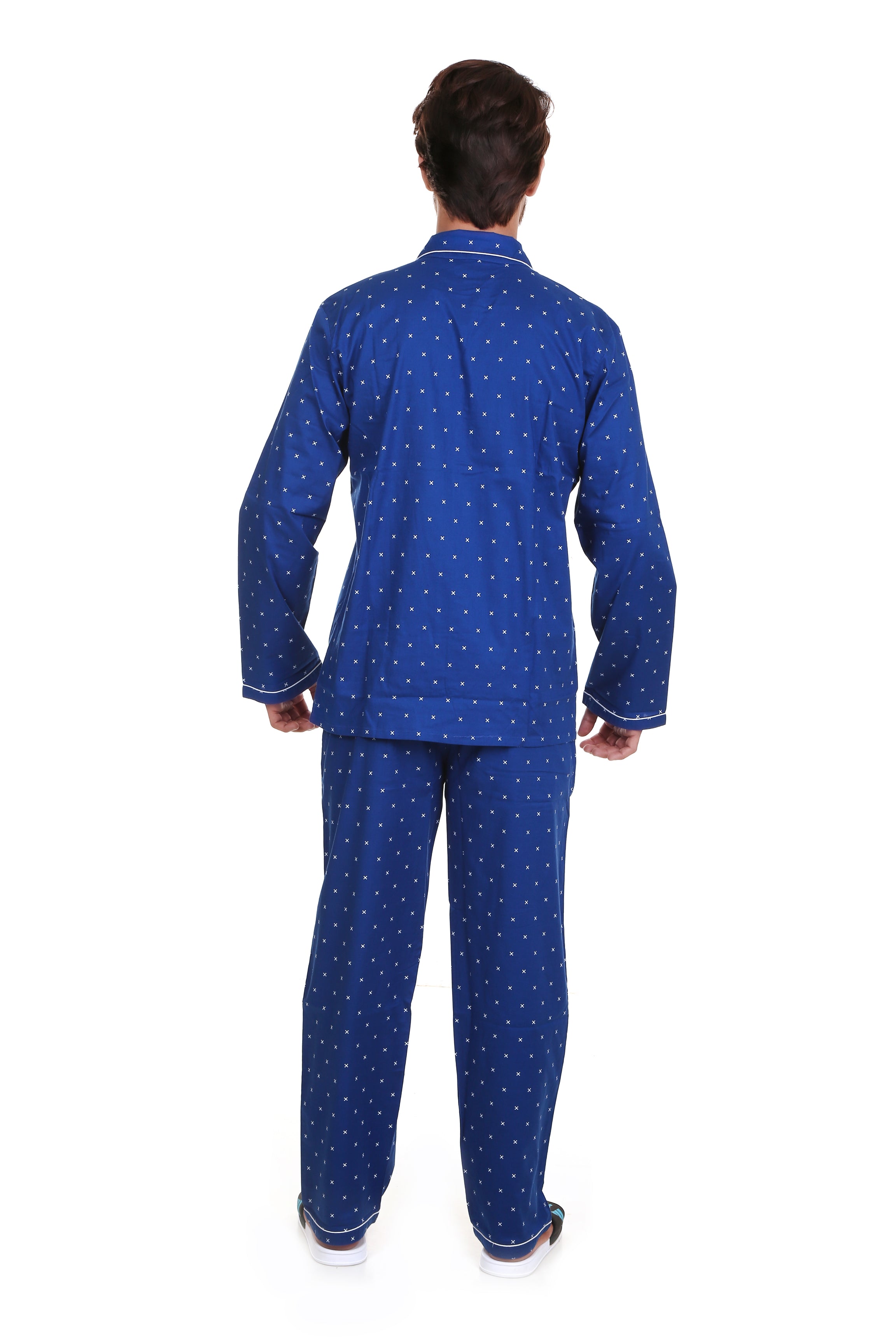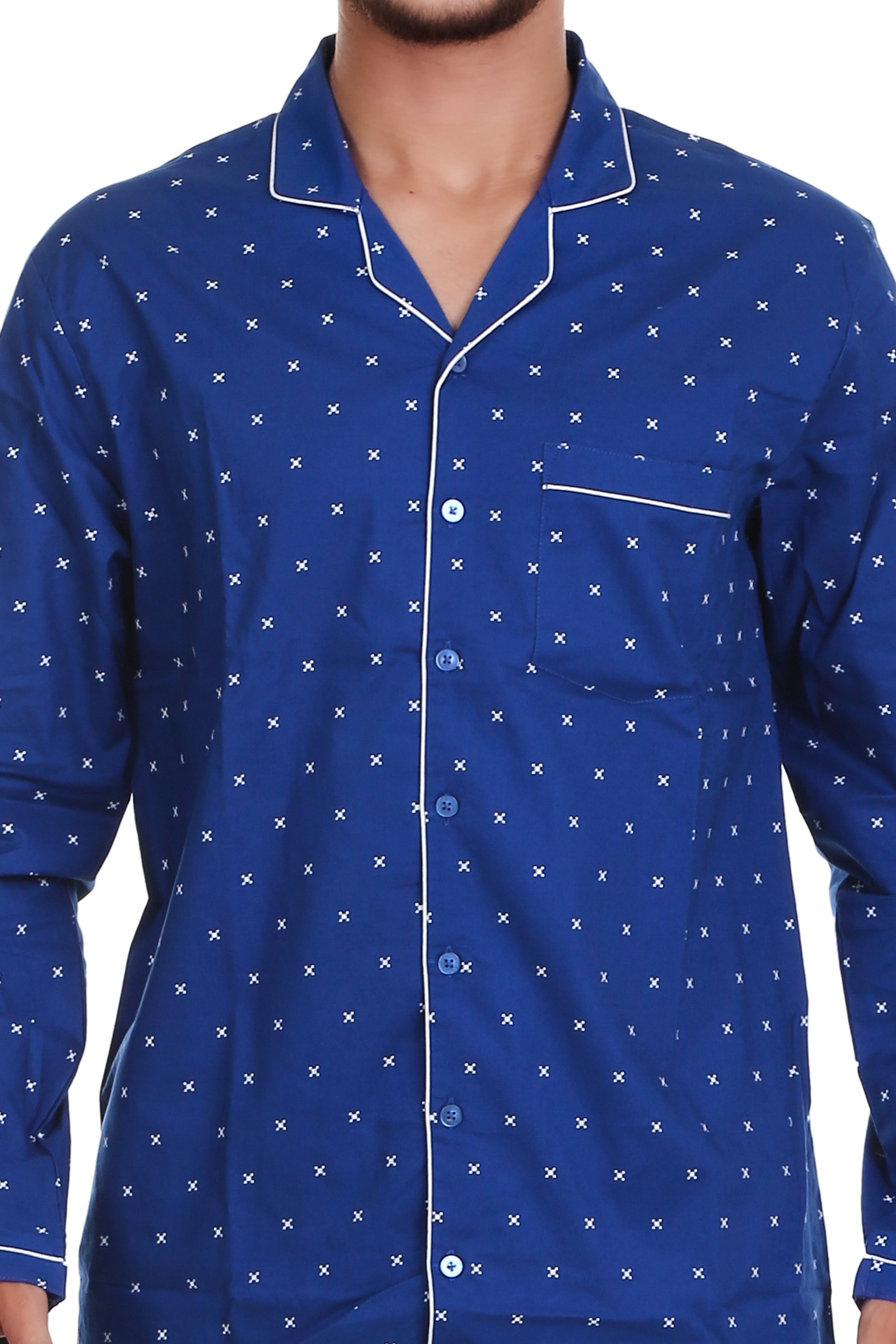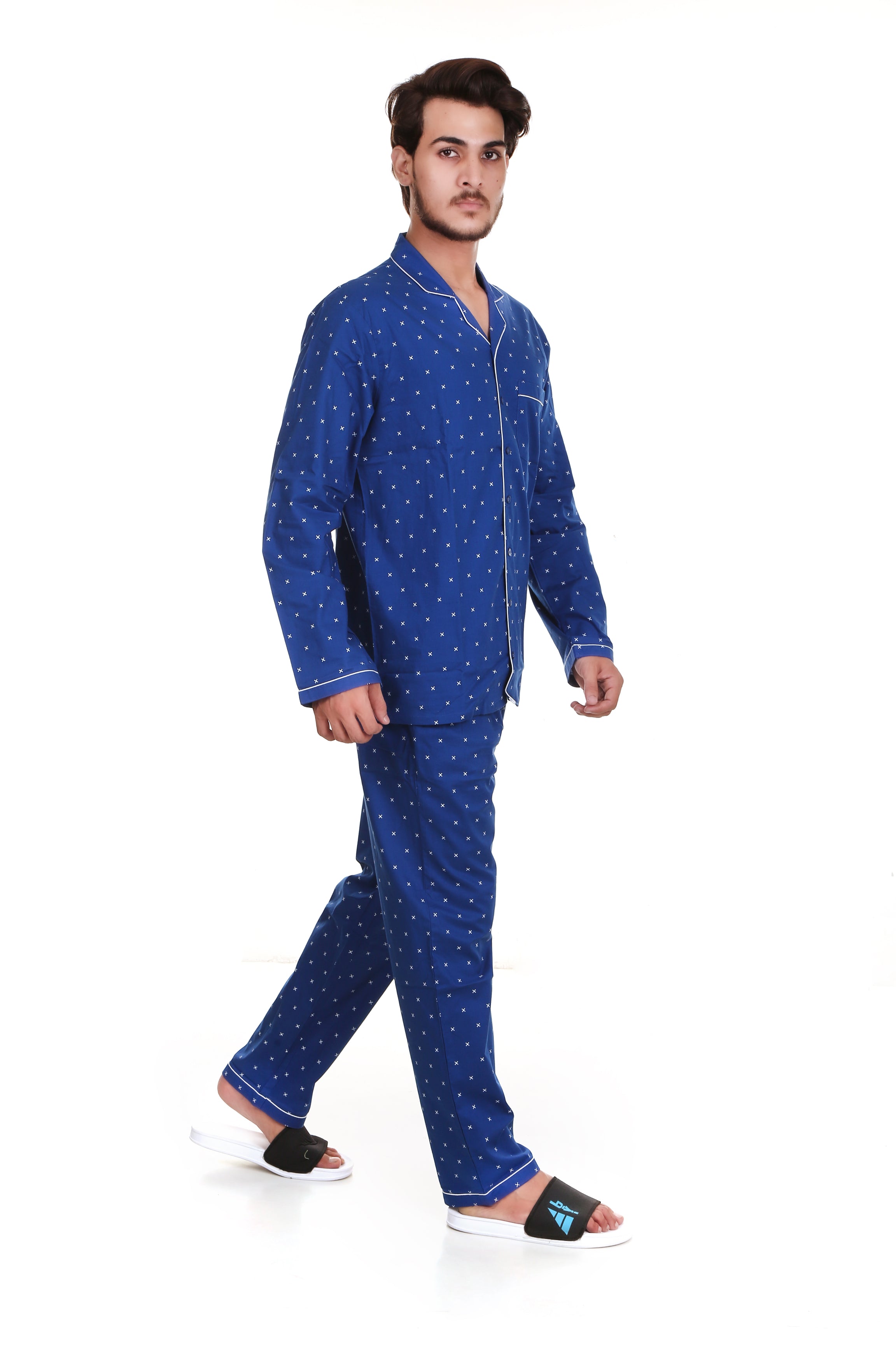 Blue Small Anchor Print Long Sleeves Night Suit For Men’s