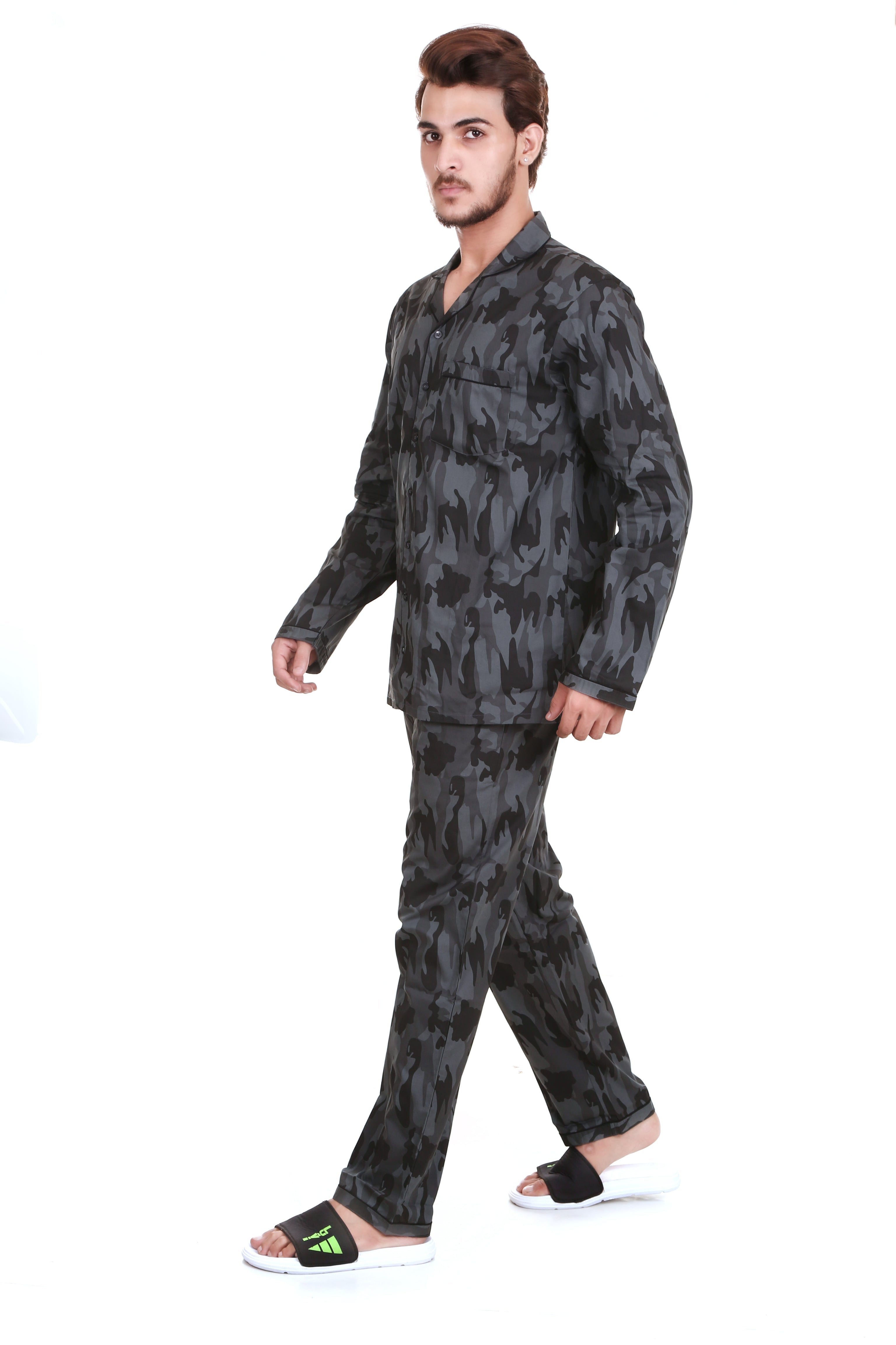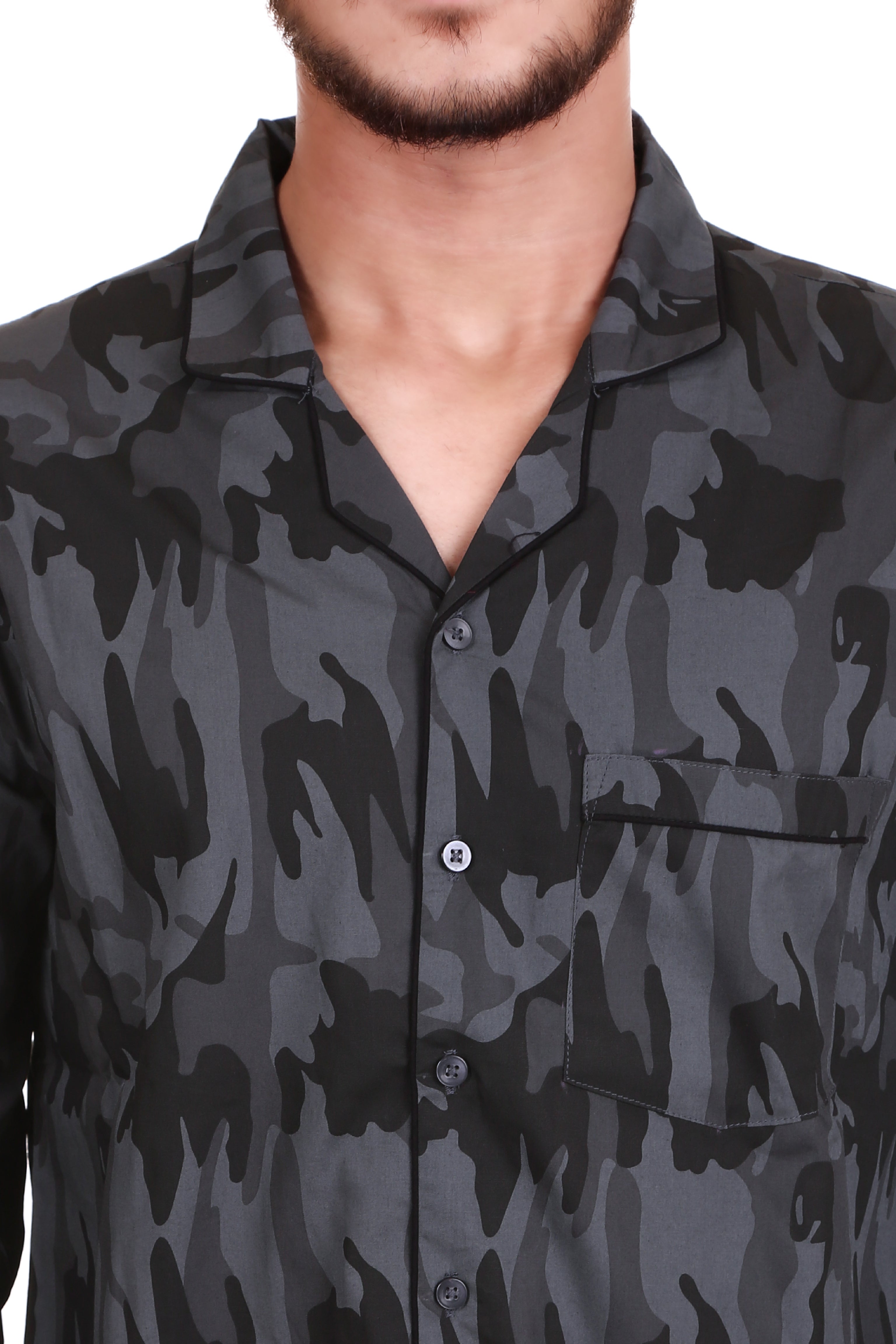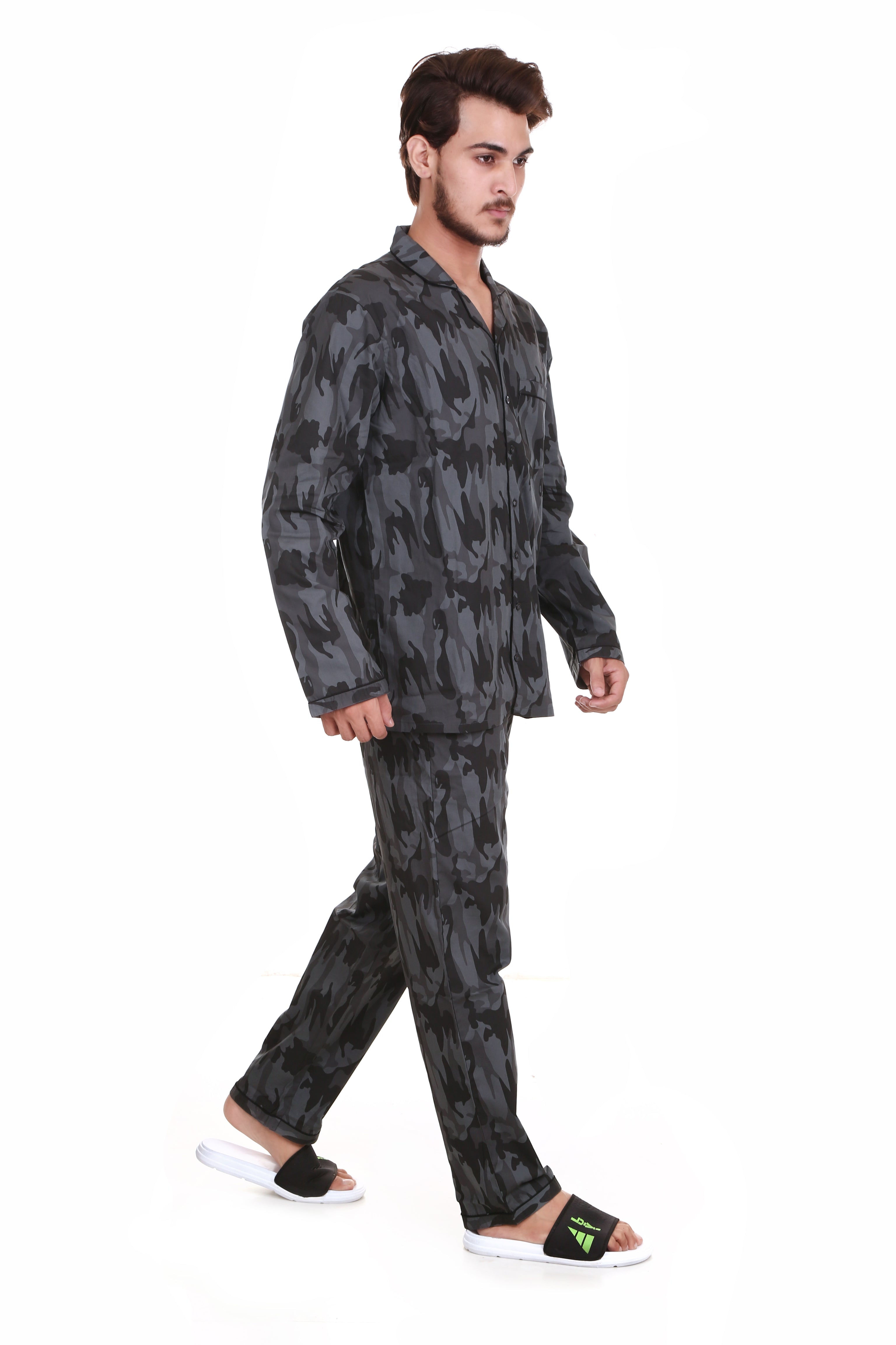 Dark Grey Armored Print Long Sleeves Night Suit For Men’s