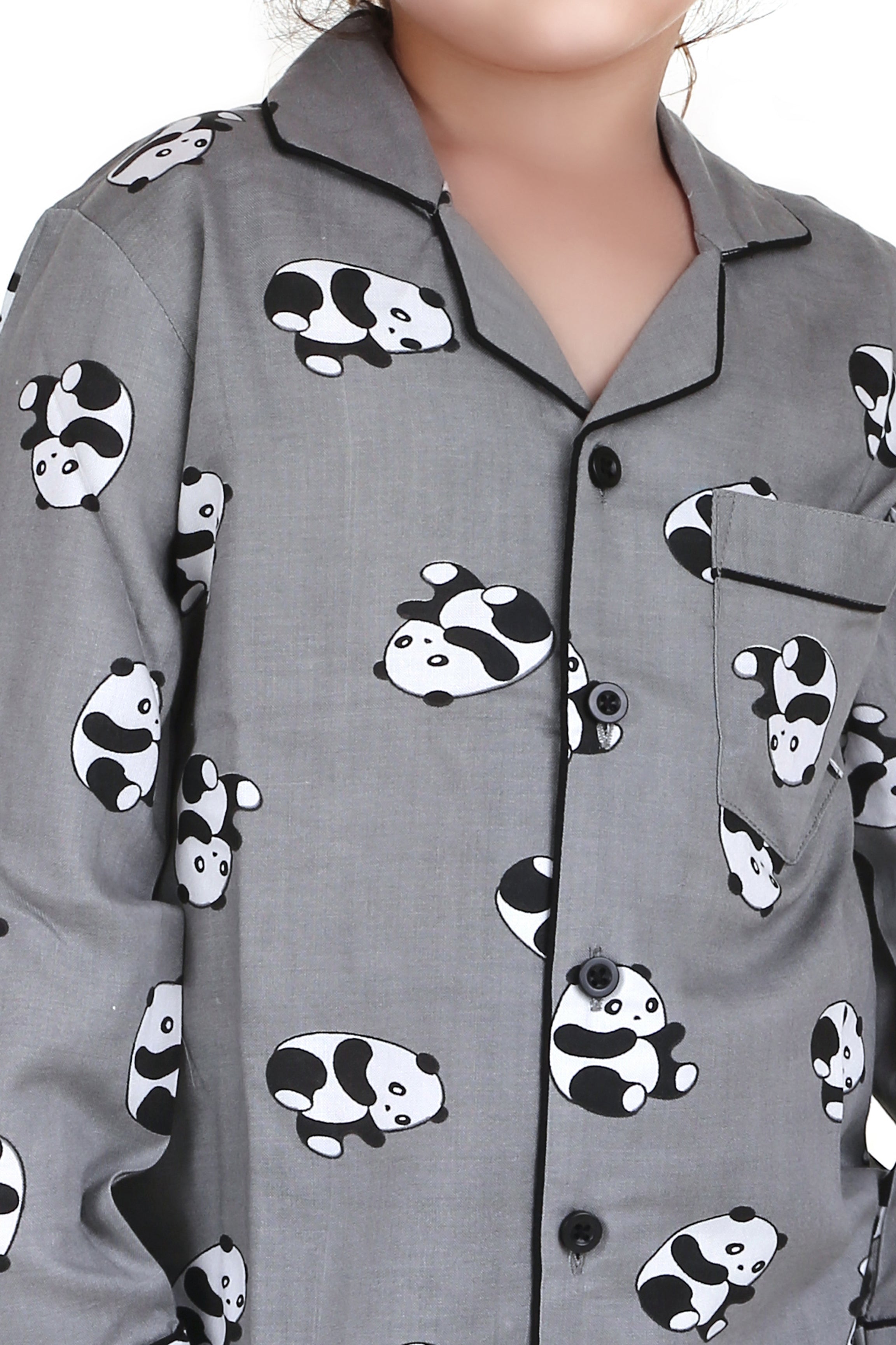 Grey Panda Print Full Sleeves Night Suit for kids
