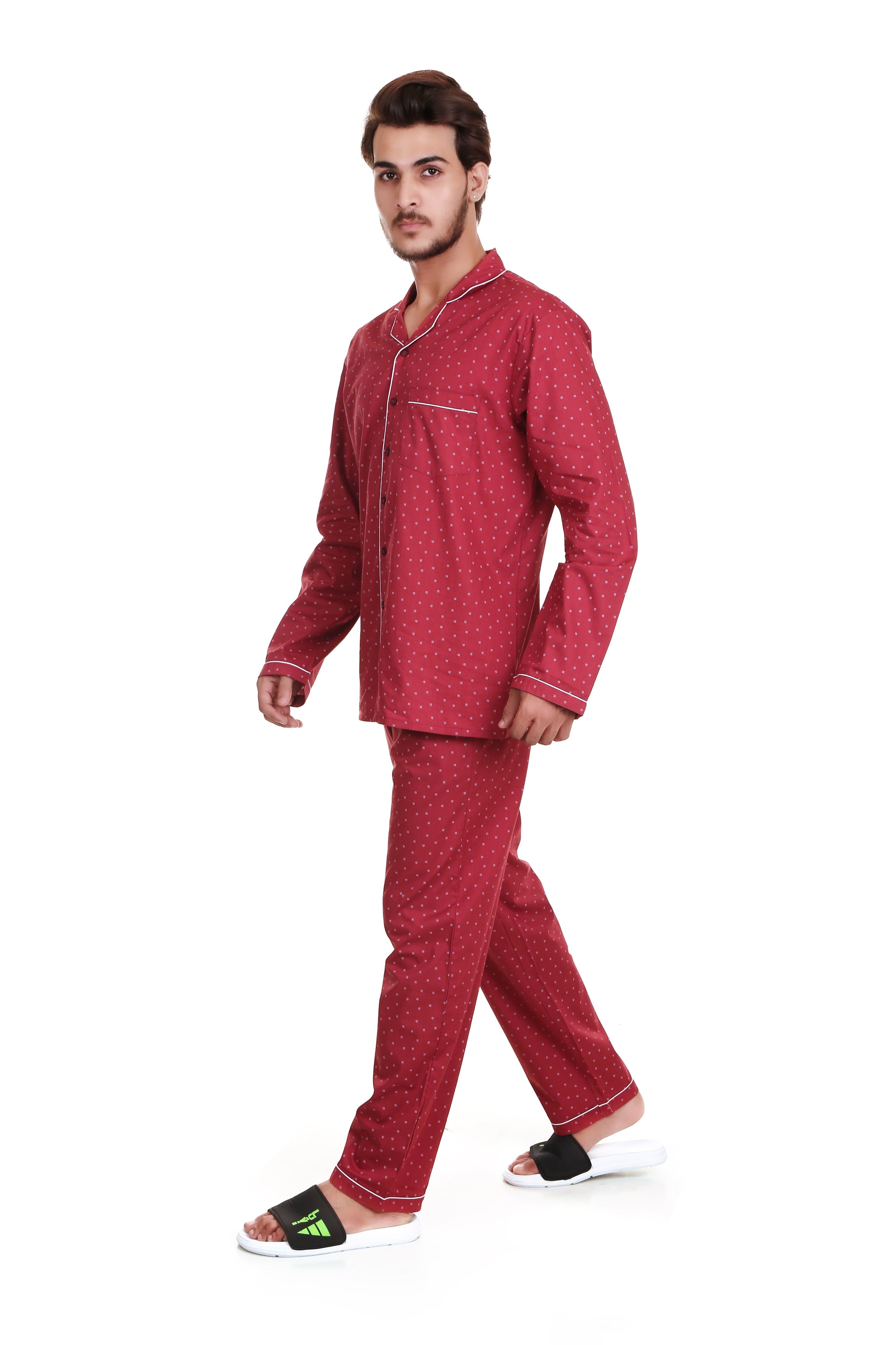 Maroon Small Anchor Long Sleeves Night Suit For Men’s