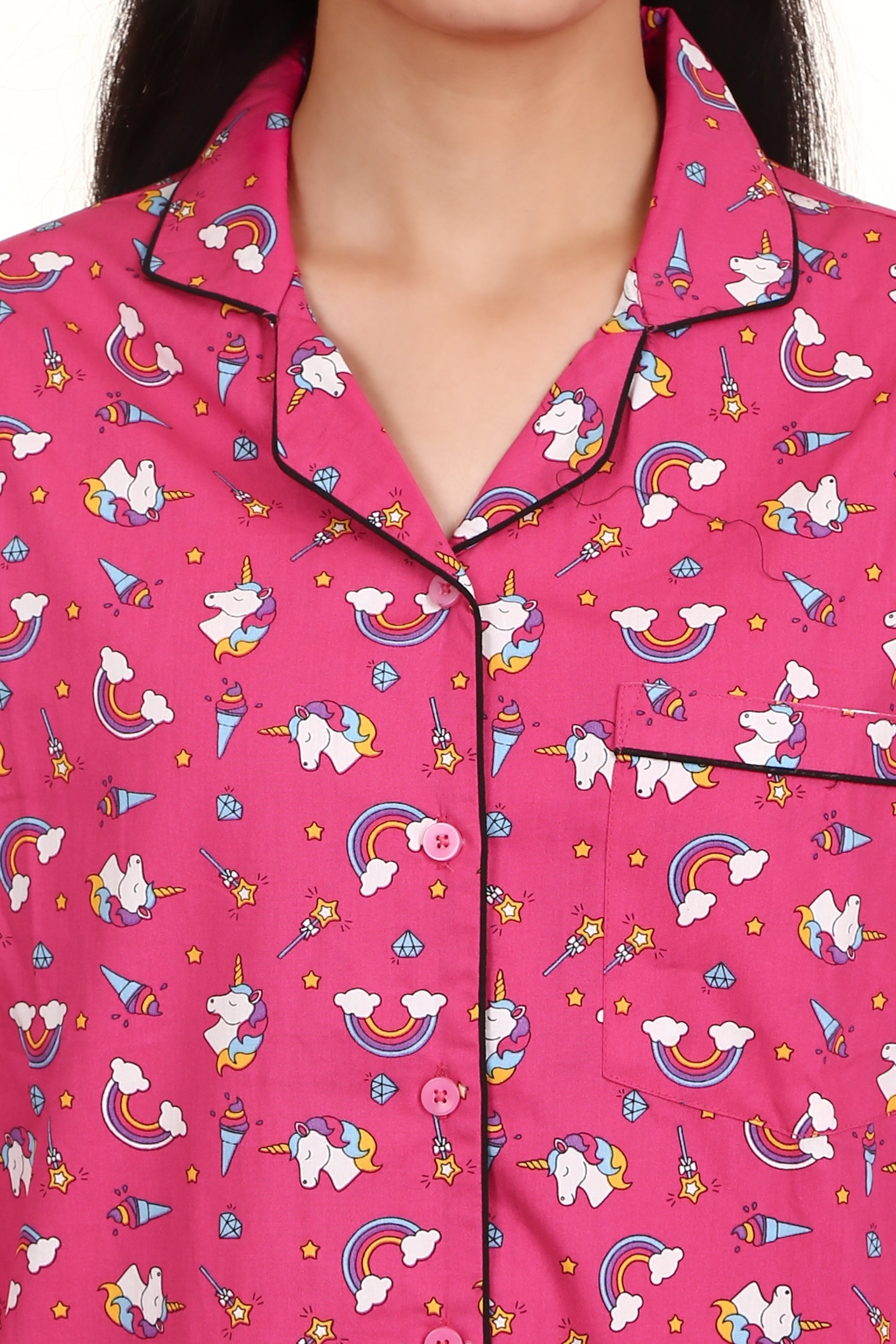 Pink Unicorn Long Sleeves Night Suit For Women’s