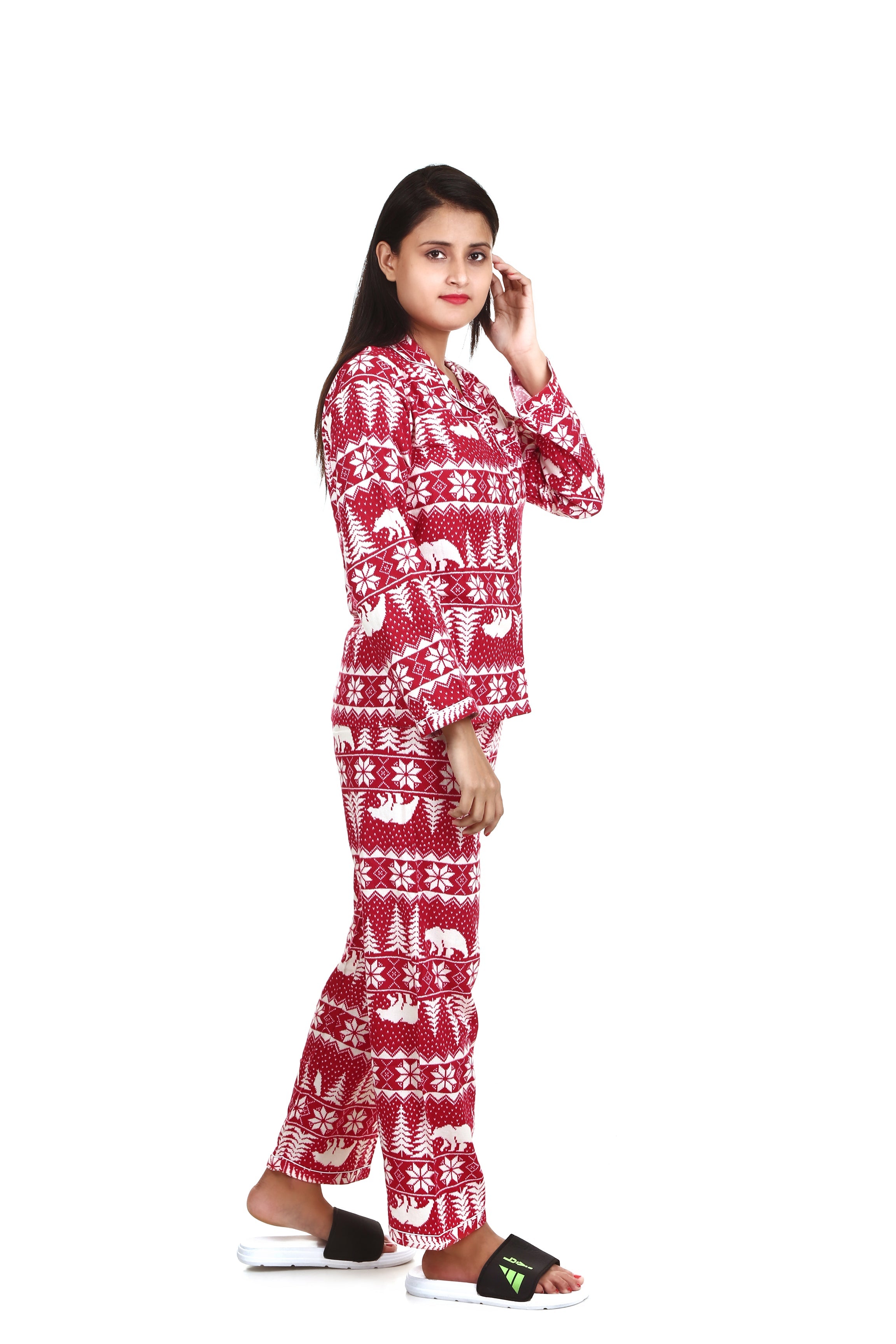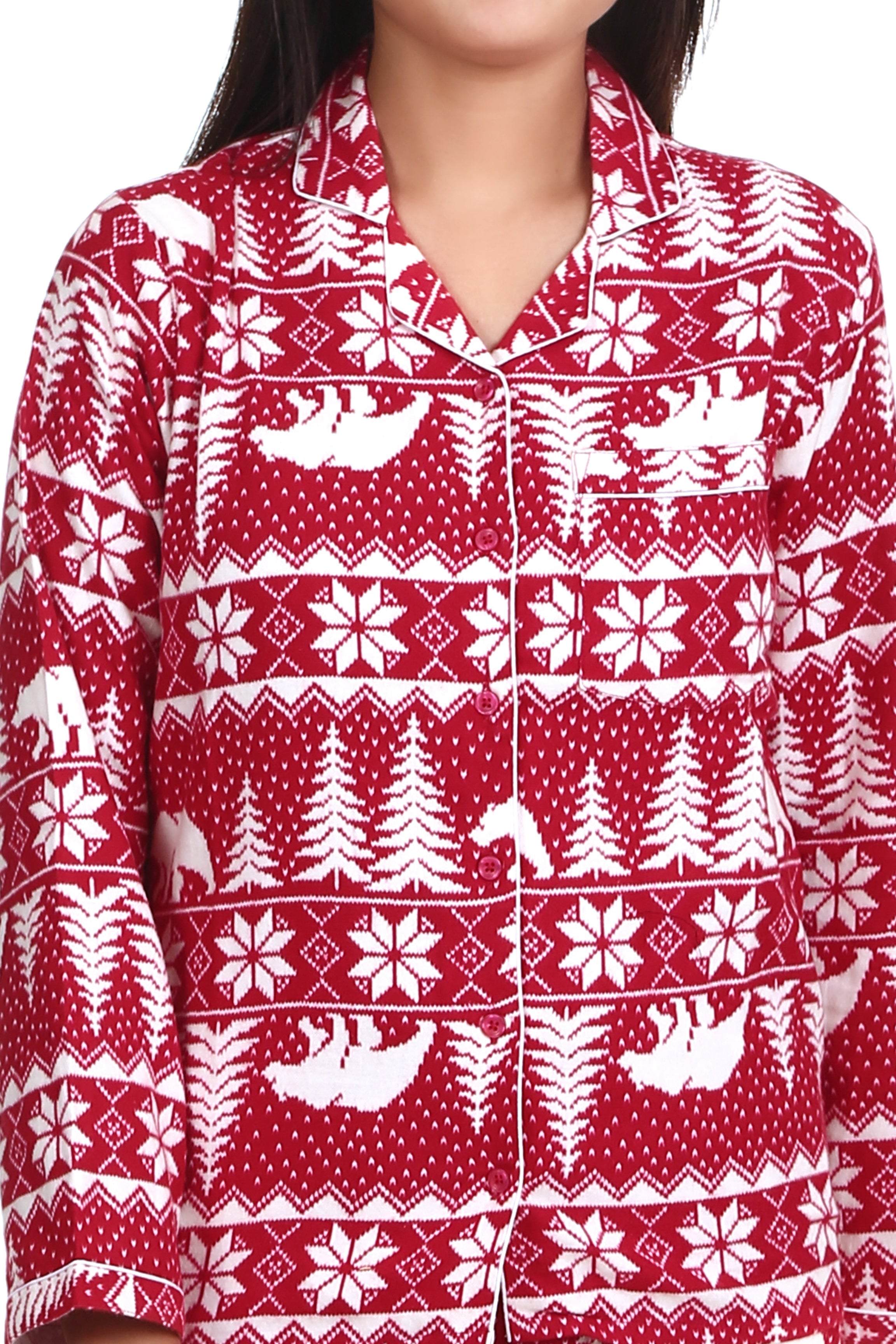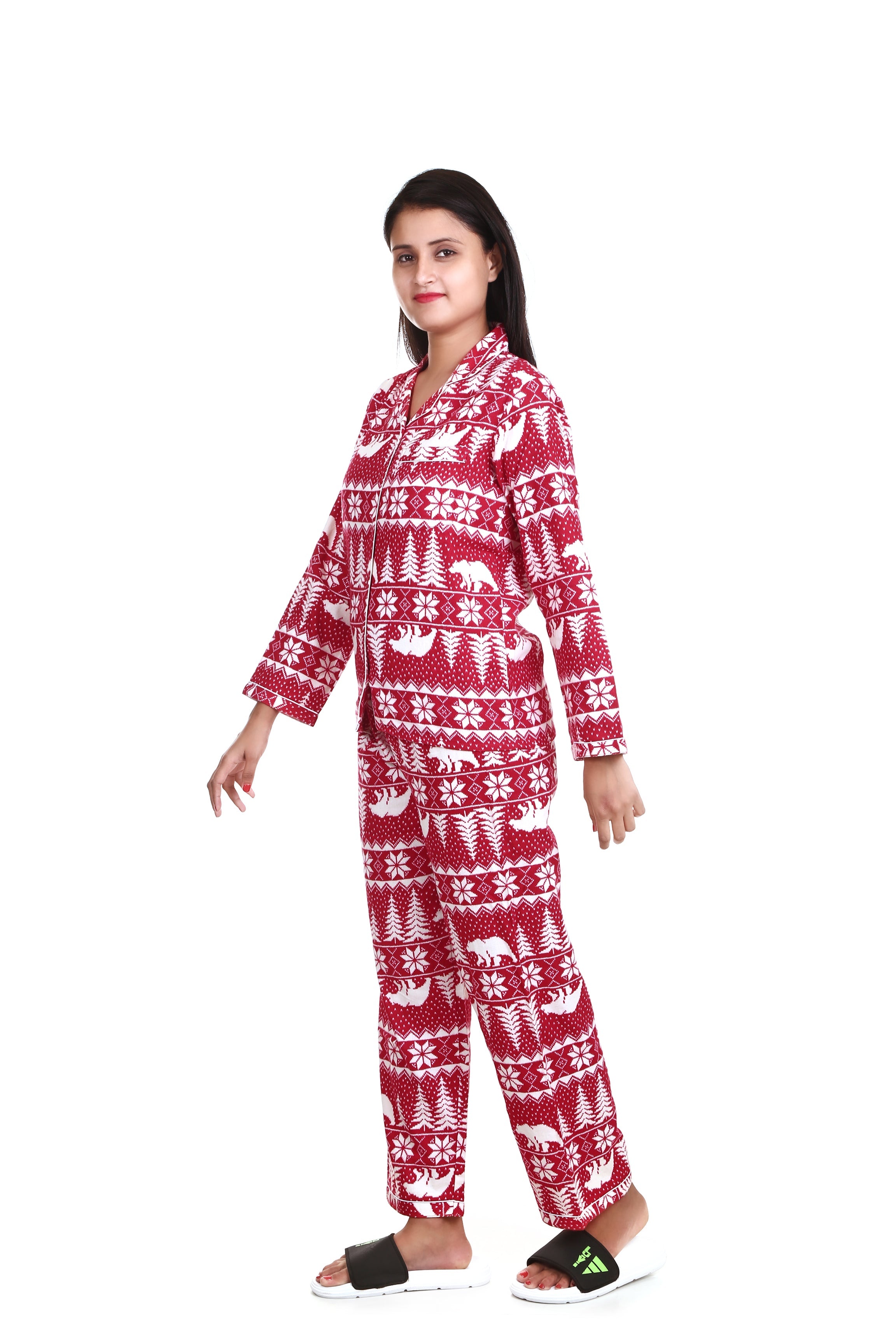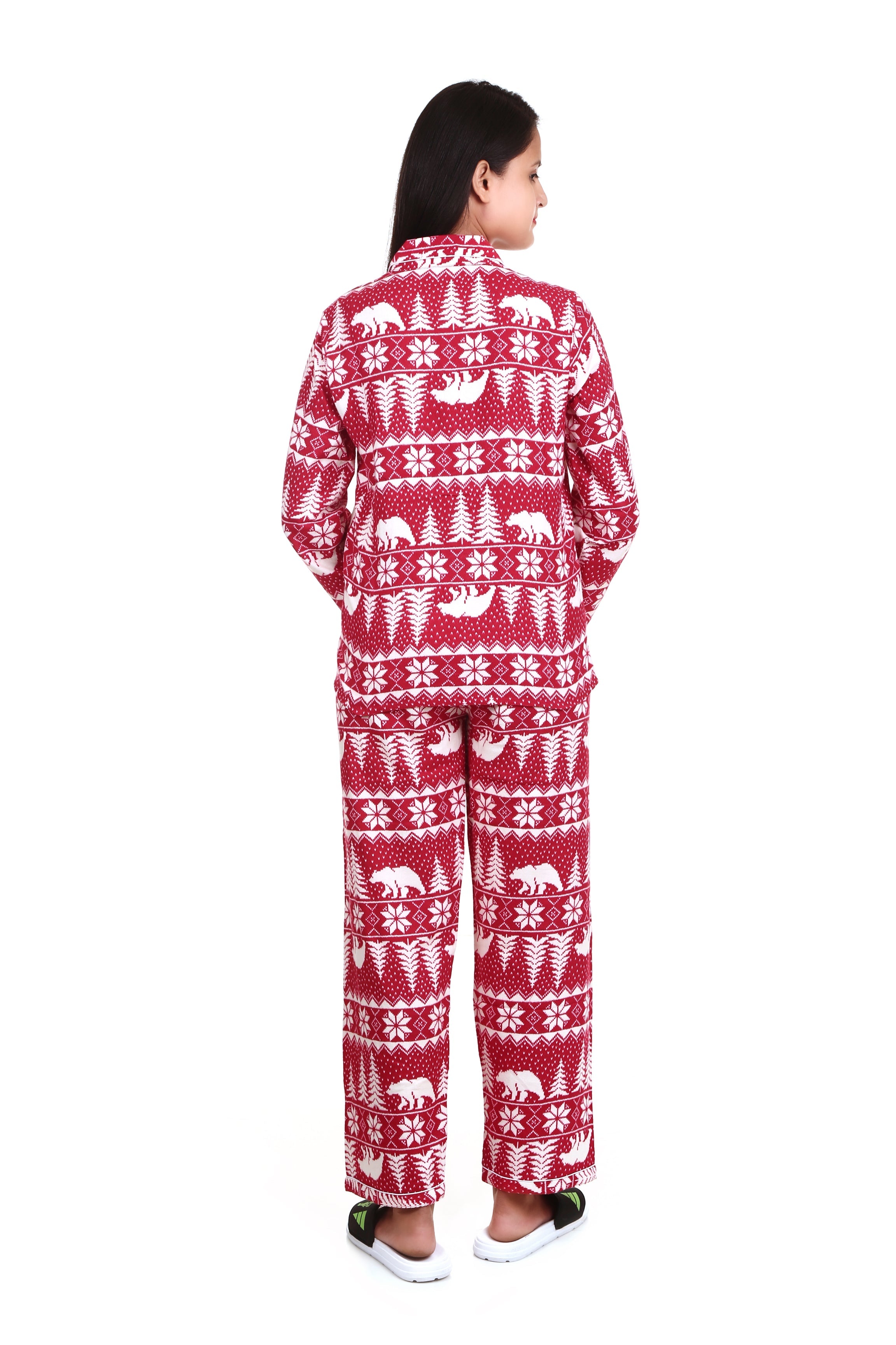 SKU: 8296293433636-polar-bear-print-long-sleeves-cotton-flannel-night-suit-for-womens