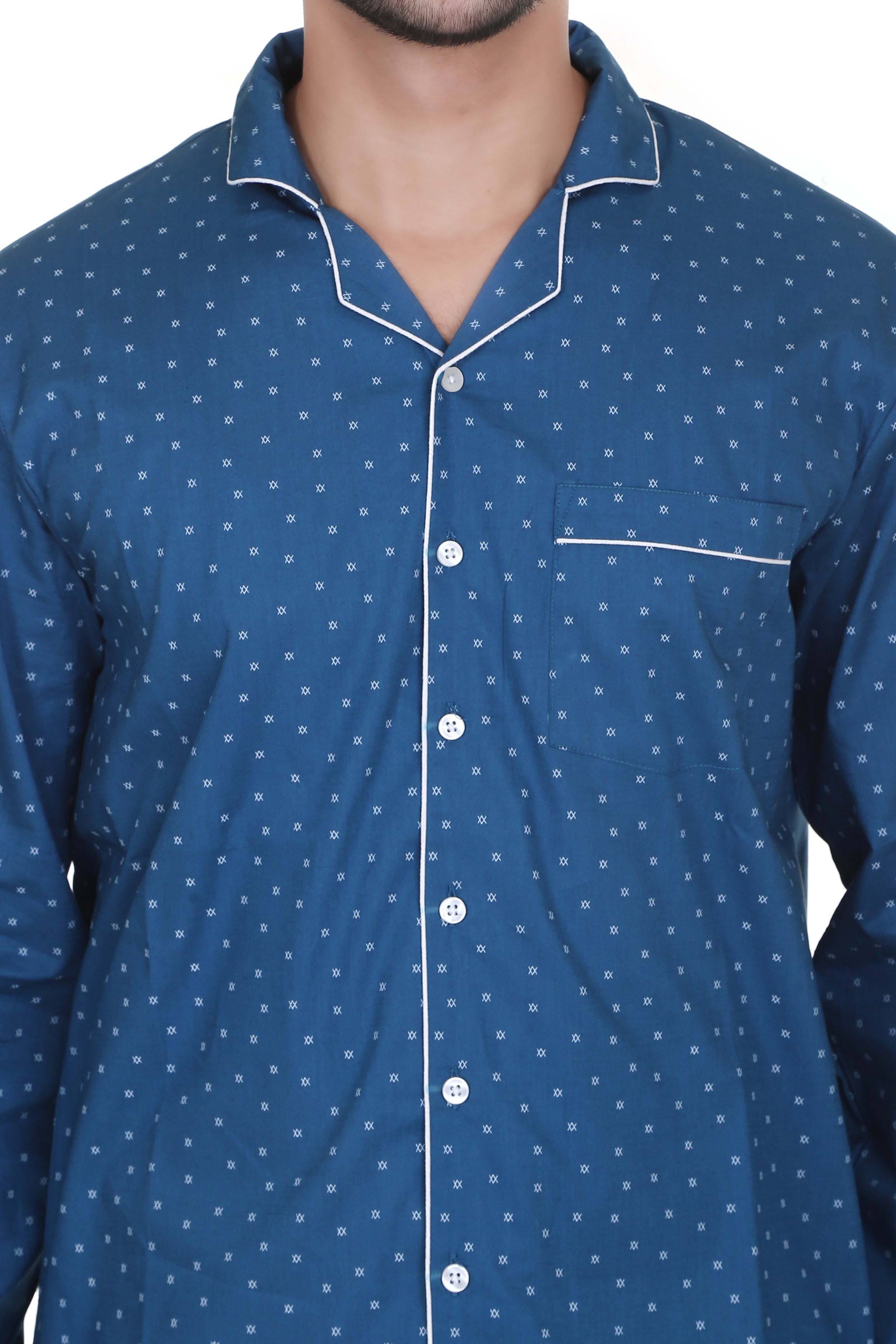 Small Cross Print Full Sleeves Night Suit for Men’s